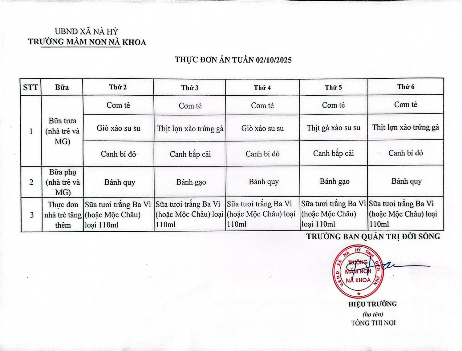 THỰC ĐƠN ĂN TUẦN 02/10/2025